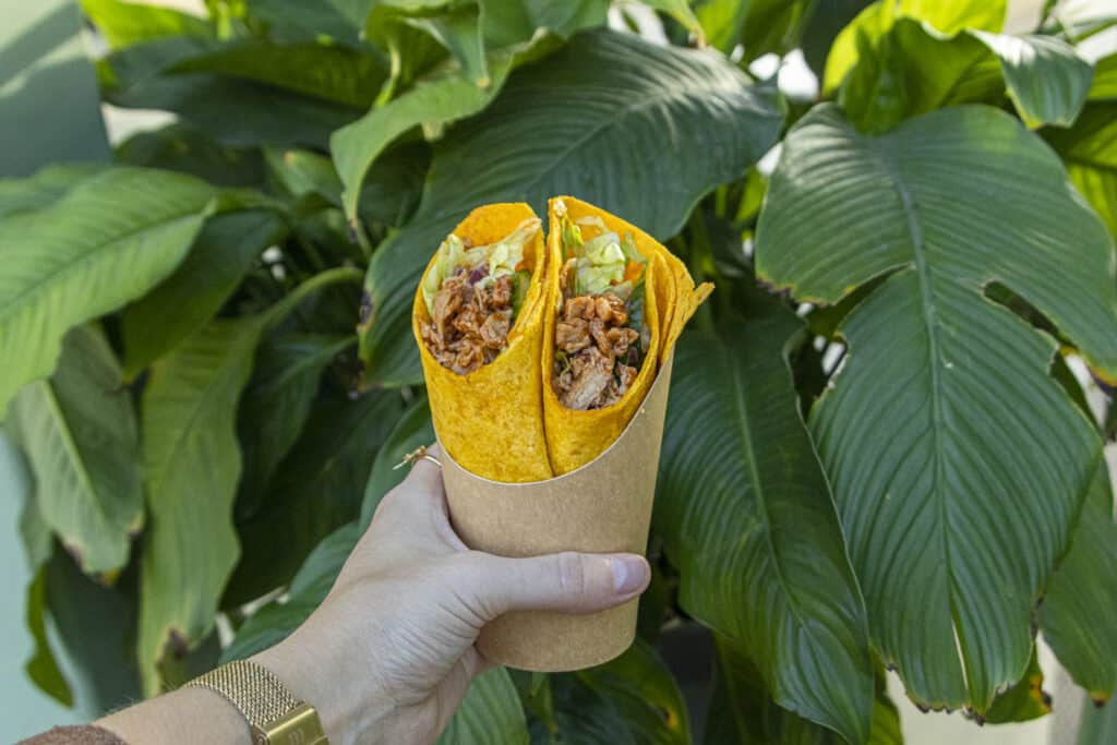 Deze maand staat er weer iets héél lekkers op het menu: een wortelwrap gevuld met plantaardige pulled chicken, knapperige ijsbergsla, komkommer, rode ui en een sweet & spicy BBQ-saus. Een maaltijd waar je blij van wordt én dat ook nog eens goed is voor de wereld 🌍
